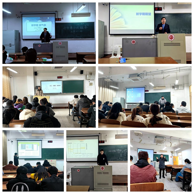2024各班班主任到场组织本学期第一次班会。班主任首先对班级上学期的成绩进行了回顾,对成绩优秀的同学进行了表扬,对挂科的同学进行了鼓励。老师们既肯定了同学们的努力,也对班级上学期的学习工作中存在的问题予以指出,并给予相关建议,对新学期的学科规划提出了许多有益的意见,并为同学们新学期的发展提出目标与要求。同时,在安全教育方面,老师们针对防范网络诈骗,注重交通安全与文明浏览网页三个方面进行了详细的指导和提醒,让同学们在新学期能够平安、充实地度过。整个班会互动热烈,同学们在交流中相互启发,共同成长。