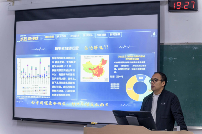 讲座中,裴孟紧扣参赛PPT这一核心环节展开深入剖析。他结合往届优秀参赛案例与常见失误,从逻辑架构搭建、数据可视化呈现、视觉设计优化三个方面,为同学们提供了极具针对性的指导建议,强调PPT需精准匹配项目核心亮点,以简洁精炼的语言传递关键信息。此外,针对备赛全流程,裴孟进一步梳理了三大注意事项:一是深度挖掘项目的创新性与市场可行性,突出差异化竞争优势;二是提前模拟答辩场景,强化对评委高频问题的应答能力;三是注重团队协作细节,确保材料提交与现场展示环节无缝衔接。