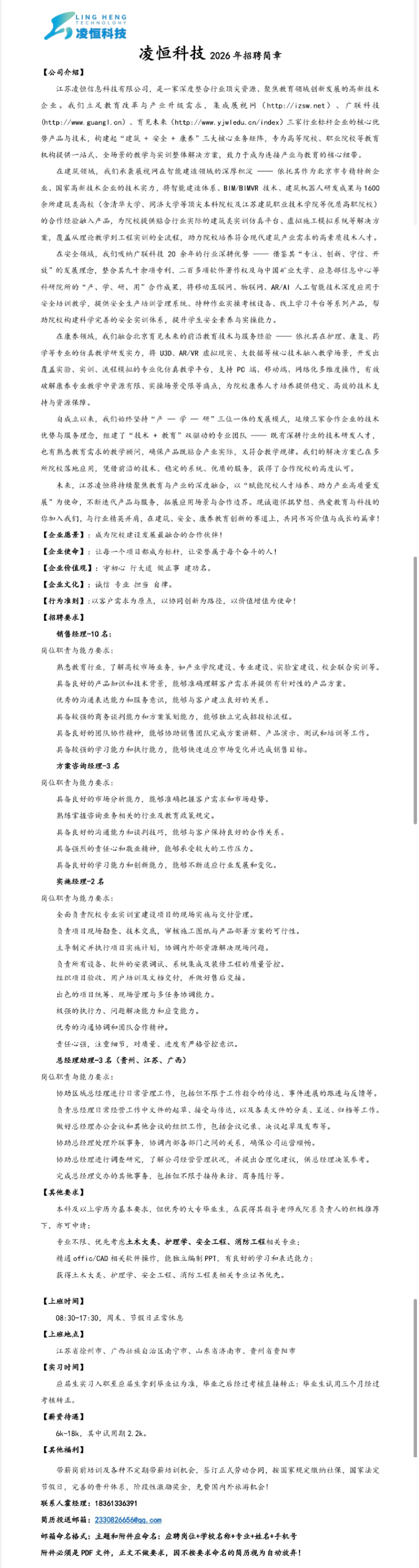 招聘速递[2026001]江苏凌恒信息科技有限公司招聘