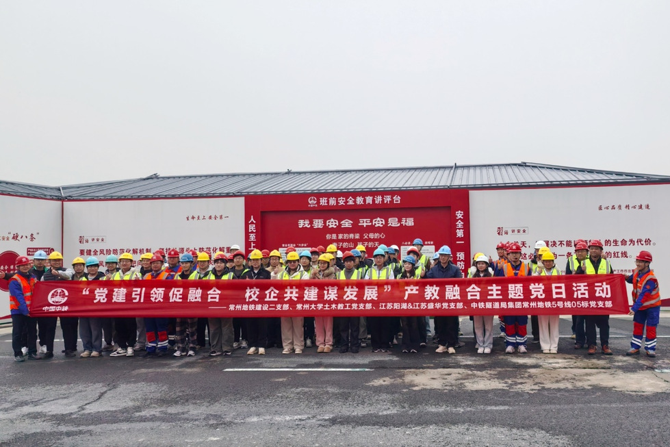 为推动党建与专业建设深度融合,探索产教融合、校企合作新路径,3 月 20 日,华体会体育官网 土木教工党支部联合常州地铁建设二支部、江苏阳湖与江苏盛华党支部和中铁隧道局集团常州地铁 5号线05标党支部,共同开展 “党建引领促融合,校企共建谋发展” 主题党日活动。学院党委副书记顾坚带队,土木教工党支部党员及土木工程专业学生共 60 余人参加活动。