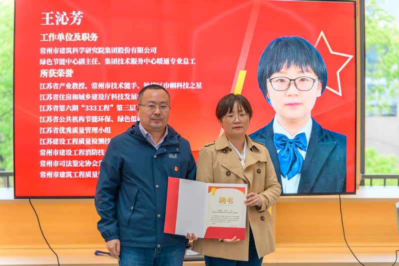 常州市技术能手、江苏省产业教授、正高级工程师王沁芳老师受邀来到现场,以“匠心筑梦”思政导师身份,围绕“建筑行业转型与青年党员的实干担当”主题,分享了自己从技术能手到行业专家的成长历程,并结合绿色建筑、低碳发展等前沿方向,鼓励同学们将专业学习与国家“双碳”战略紧密结合。